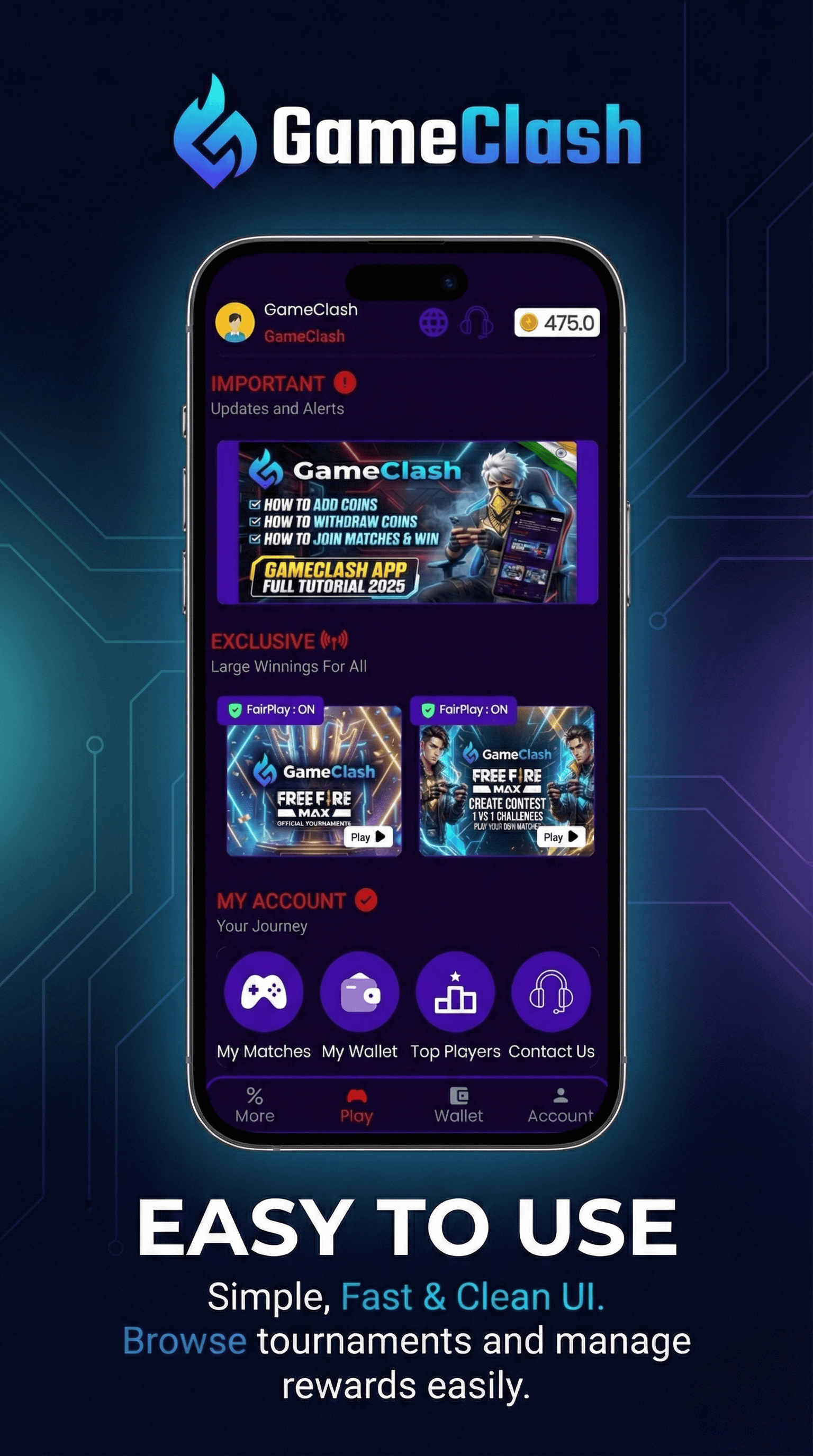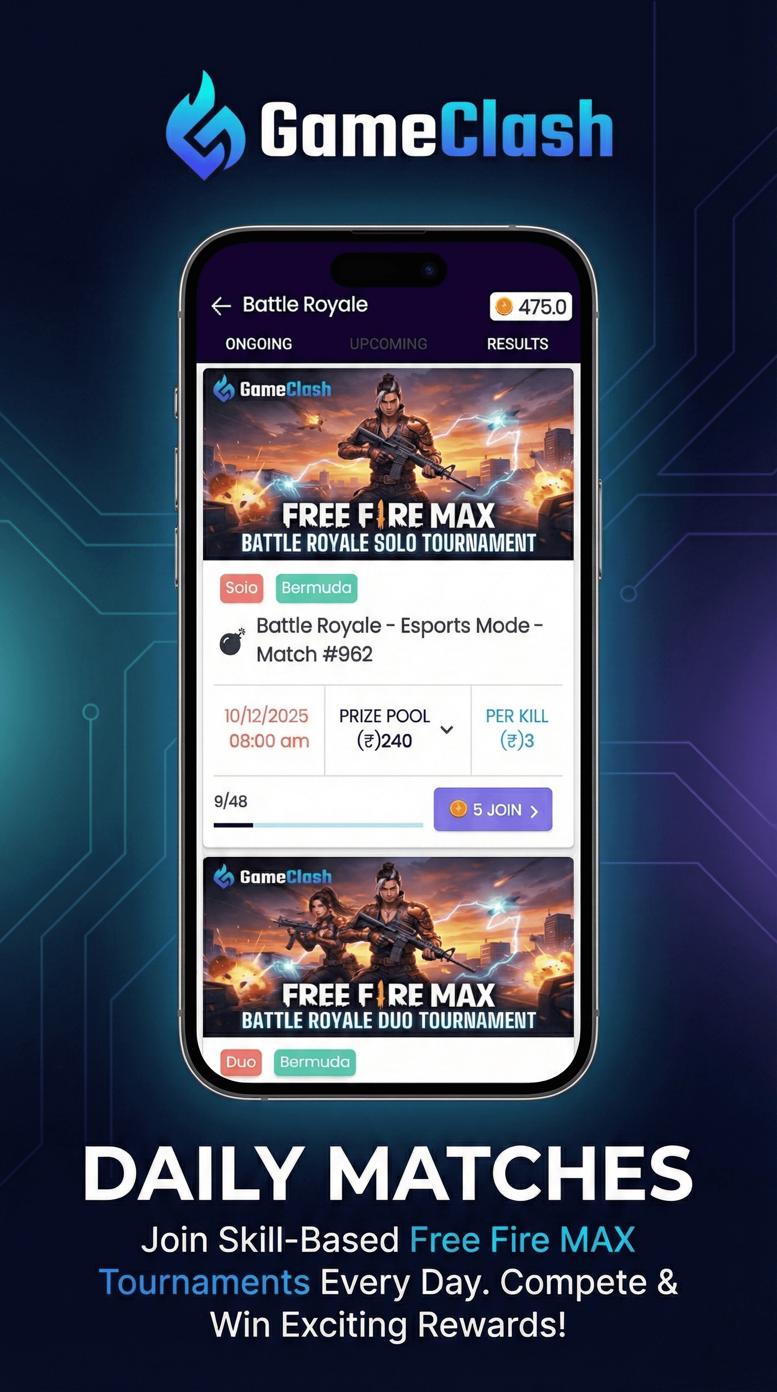 GameClash gives you a simple, skill-based stage to play Free Fire MAX e-sports and join exciting daily tournaments.